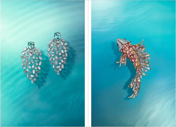 秋季发布的其他瞩目作品包括:一款来自瀚海星螺(Shell)主题的项链,镶嵌钻石及一颗重逾10克拉、拥有卓越品质的蓝色铜锂碧玺;一款来自鱼跃光影(Pisces)主题的项链,镶嵌一颗未经优化处理橙色蓝宝石,逾23克拉的重量堪称稀世罕有;一款来自珊瑚溢彩(Coral)主题的项链,镶嵌钻石及总重逾37克拉的未经优化处理的紫色蓝宝石,散发着动人心魄的美;一款来自海岩星韵(Starfish)主题的吊坠,镶嵌钻石及一颗重逾22克拉的未经优化处理的绿色铜锂碧玺,色泽剔透,堪称瑰宝。