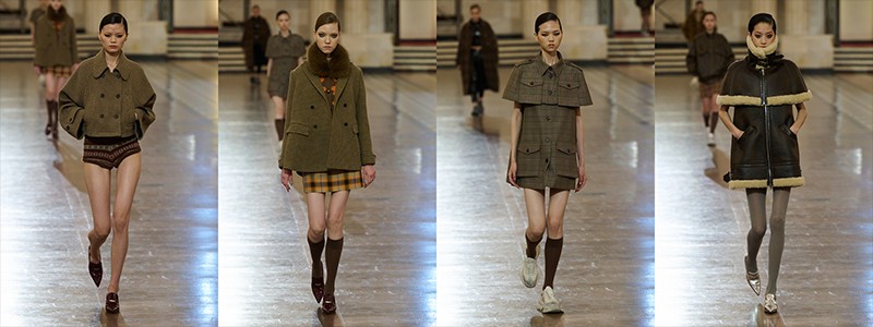 UOOYAA对60年代的致敬,并非流于表层。这份复古未来主义的表达,从设计廓形的初期就已暗含其中:从简洁的A字迷你裙,宽阔包容的中性外套,到极具嬉皮精神的喇叭裤及曾流行一时的猎装元素,都在本季中可见一斑。但UOOYAA的借鉴并非直接地照搬,而是与当下更为现代的款式彼此结合:如开场秀中一系列外套及裙装,在A字迷你裙的简洁廓形中增添了娃娃领的设计,出现俏皮感的碰撞;或是以宽松的男装夹克为基础,加大量感,形成全新的O字膨胀廓形,以男装的思想完成女装的构造,帅气中又多出动态的女性灵巧;当下流行的多口袋工装回潮,也与喇叭裤的廓形恰当融合,搭配五瓣花的毛绒贴片,酷女孩的甜美内心就跃然眼前。