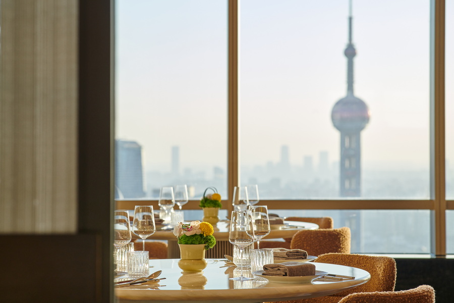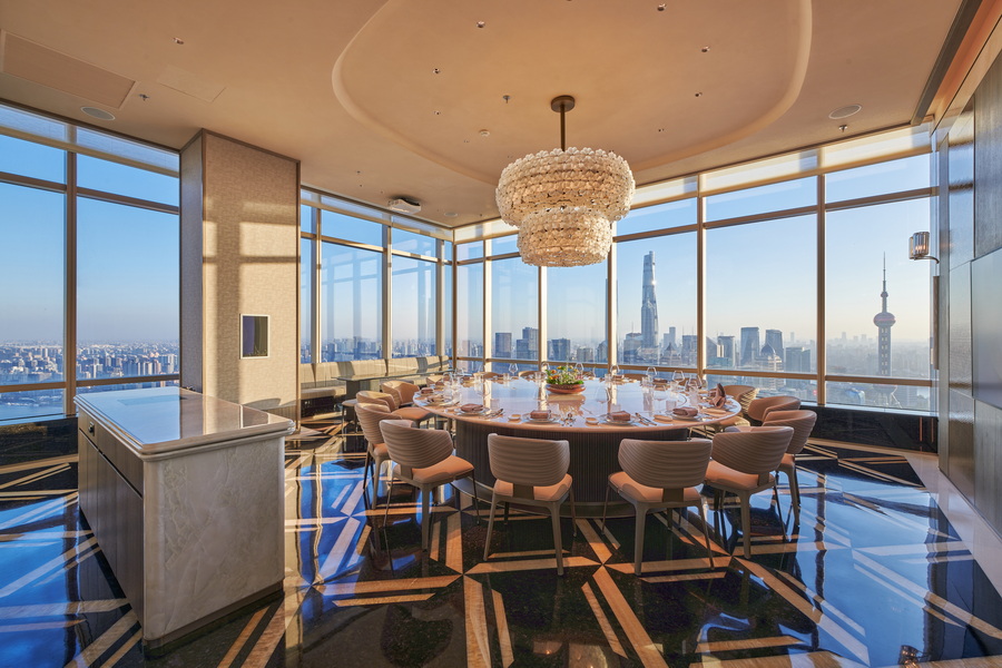 餐厅选址位于上海迄今建成的最高双子塔–北外滩来福士西塔内,建筑由全球一线设计公司PCPA操刀,外形极具现代感。餐厅入驻西塔五十六层,拥有总长近百米的挑高落地窗,宾客可于两百七十米高空,尽览上海黄浦江、浦东及外滩建筑群的壮丽景观。
