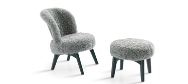 Cristina Celestino的Ottavia座椅迎来新的姐妹款设计Lazy Ottavia:一款温馨舒适的扶手椅,配有一个小凳,也可用作边桌。多种饰面版本,本次将在米兰设计周上展出绵羊皮版。